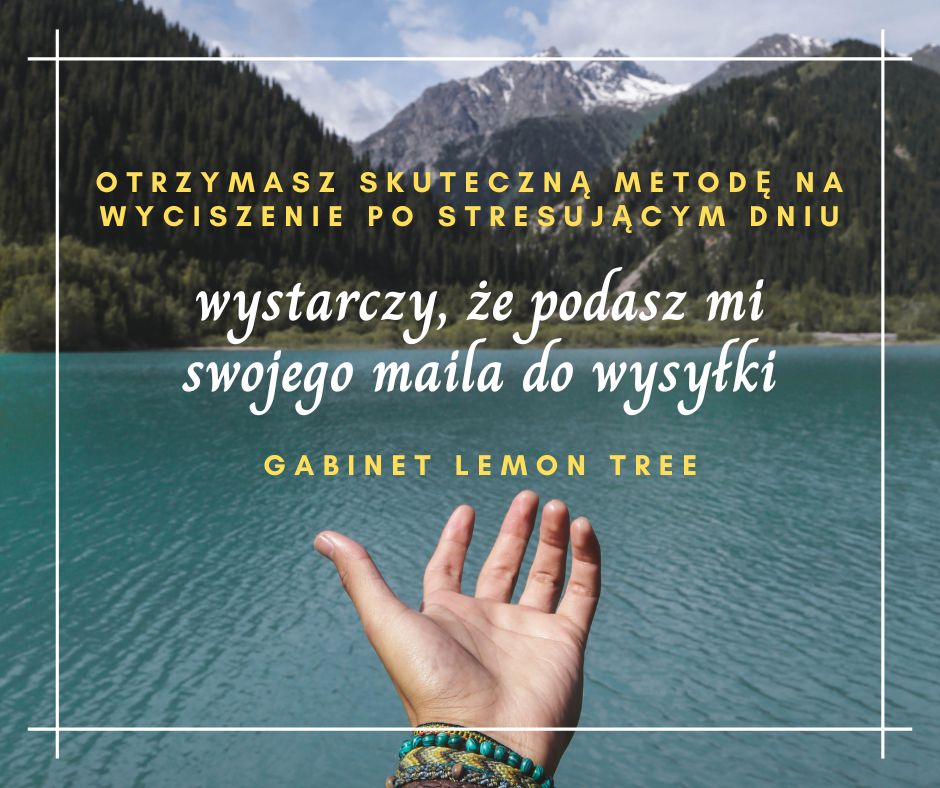 Jeśli chcesz otrzymać darmowy tapping na wieczorne wyciszenie po stresującym dniu razem z instrukcją, to napisz do mnie wiadomość na maila: Ten adres pocztowy jest chroniony przed spamowaniem. Aby go zobaczyć, konieczne jest włączenie w przeglądarce obsługi JavaScript.